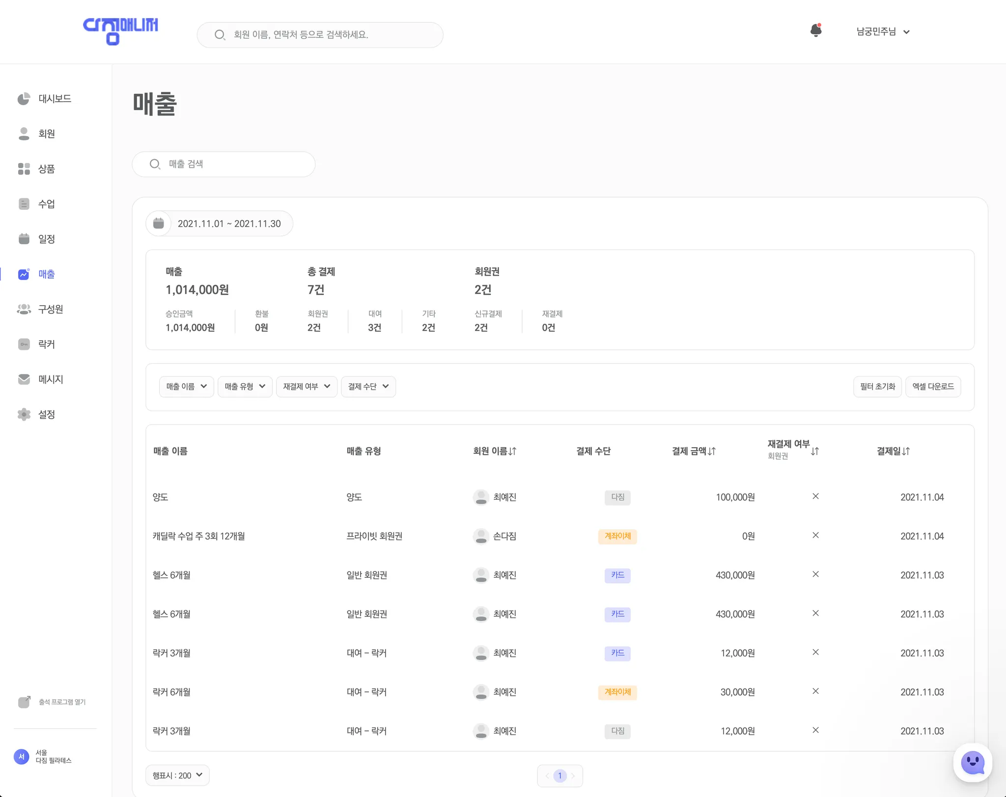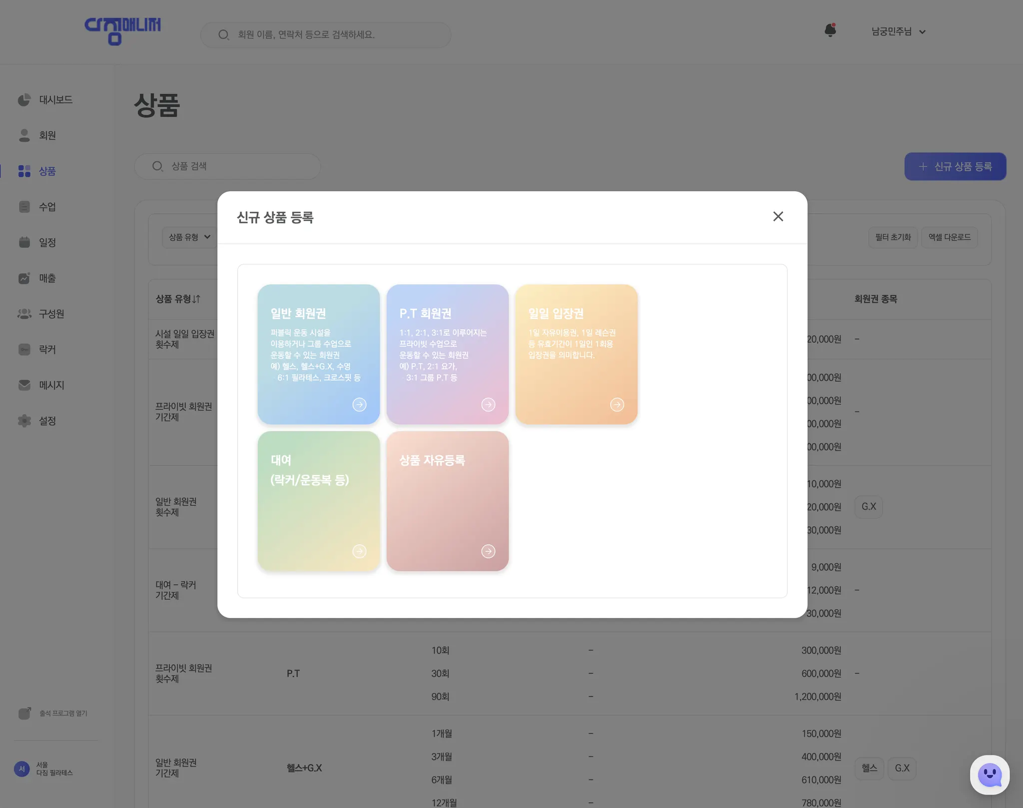 다짐매니저는 체육시설의 운영을 더 스마트하게 도와주는 회원관리프로그램입니다.
