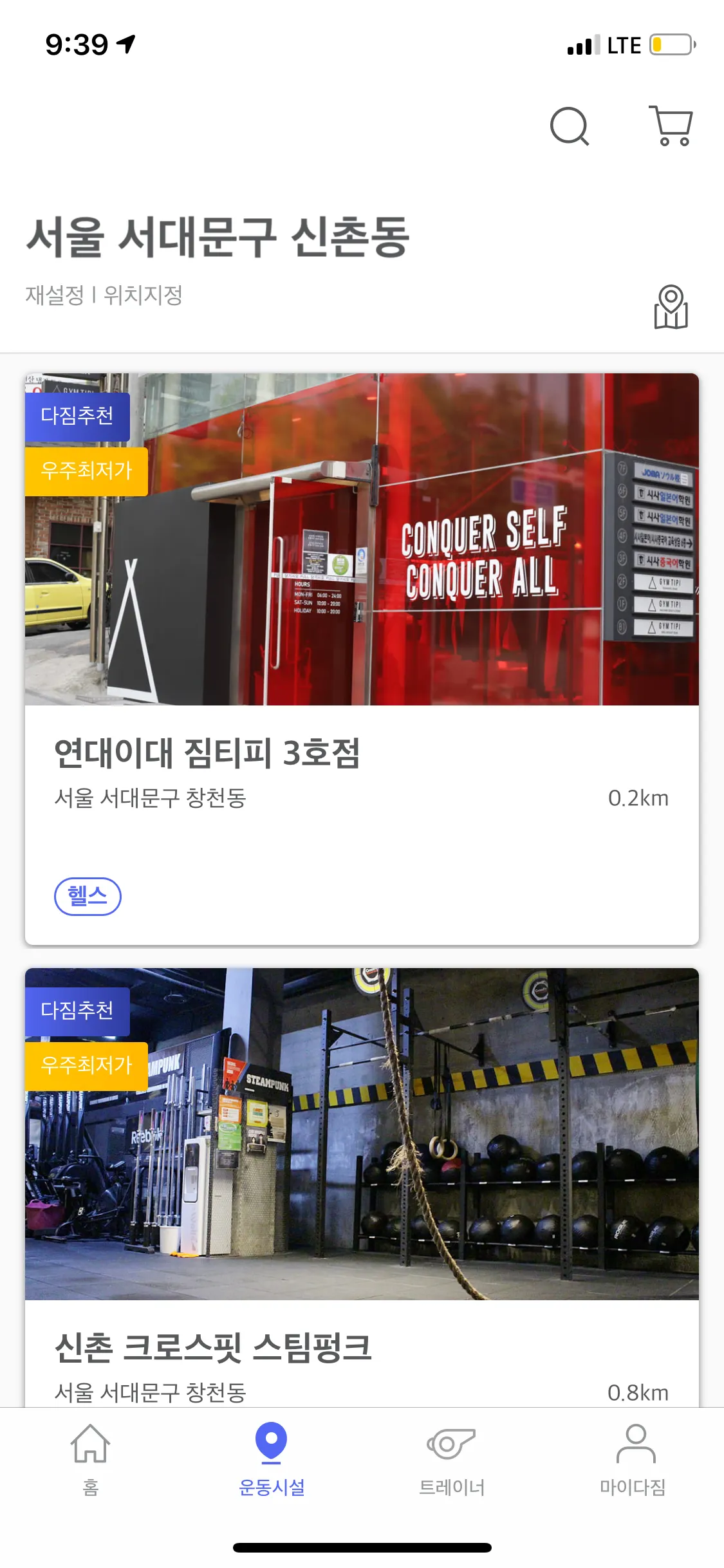 현대인들은 거주지역과 활동지역이 달라 여러 곳에서 운동하고 싶어합니다.